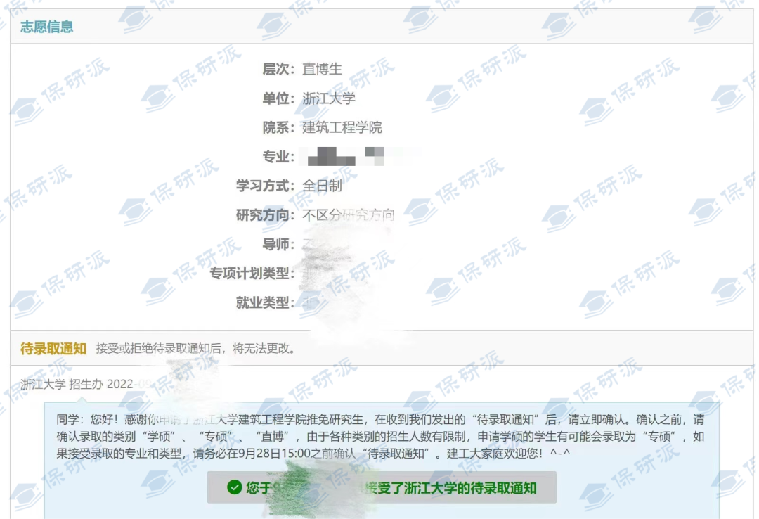 4. 无论何时心态放平,很多同学都是在预推免最后阶段才拿到心仪的offer,另外在928当天不要急着点击待录取,有很多学校晚些时候会放出名额并询问你是否接受,耐心再等等。