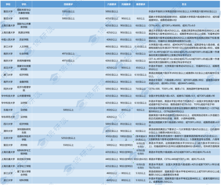 我们可以看下部分院校对于英语的要求,同学们能更直观感受到英语在保研中的存在感~